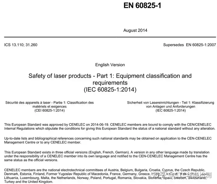 IEC/EN60825-1激光安全标准是基于激光技术的特性和风险级别进行制定的。该标准于2007年发布,旨在为各类激光产品提供明确的安全要求和测试方法。